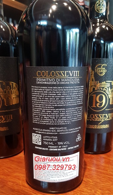 GIARUOU.VN - NHÀ PHÂN PHỐI, NHÀ CUNG CẤP, NHÀ BÁN BUÔN, NƠI BÁN RƯỢU VANG Ý 19 COLOSSEVIII PRIMITIVO DI MANDURIA 19 ĐỘ ( 19 COLOSSEUM) CANTINE ERARIO HÀNG CHUẨN CHÍNH HÃNG, UỐNG CỰC NGON, UY TÍN, GIÁ BÁN BUÔN RẺ NHẤT