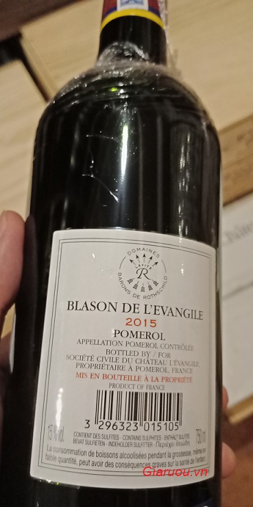 GIARUOU.VN - NHÀ PHÂN PHỐI, NHÀ BÁN BUÔN, NHÀ CUNG CẤP, ĐỊA CHỈ NƠI BÁN RƯỢU VANG PHÁP 15 ĐỘ BLASON DE L'EVANGILE POMEROL CHÍNH HÃNG, HÀNG CHUẨN UY TÍN, UỐNG NGON, GIÁ BÁN SỈ RẺ NHẤT