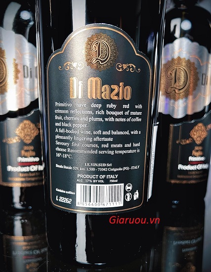 BÁN GIÁ RẺ NHẤT - NHÀ PHÂN PHỐI, NHÀ BÁN BUÔN, ĐỊA CHỈ CUNG CẤP RƯỢU VANG Ý DI MAZIO PRIMITIVO PUGLIA 17%VOL UỐNG NGON, HÀNG QUÁ ĐẸP, GIÁ BÁN SỈ RẺ TỐT NHẤT HÀ NỘI
