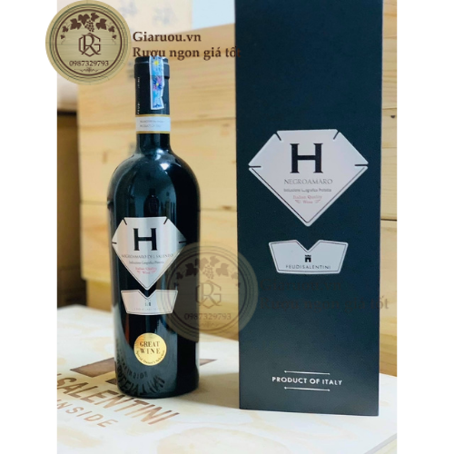 Thiết kế hoàn hảo cho nhãn rượu H bạc NEGROAMARO DEL SALENTO, Sang trọng, đẹp mắt, ấn tượng, chai rượu to, rất xứng đáng mang lại cho bạn những món quà quý giá để tặng bạn thân và gia đình, hay khách hàng của mình.