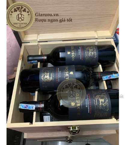 ROSETO NEGROAMARO PUGLIA là chai rượu vang Ý quá chất lượng, nhãn mác sang trọng đẹp mắt, thùng gỗ 6ch, đáp ứng nhu cầu tặng biếu vô cùng sang trọng