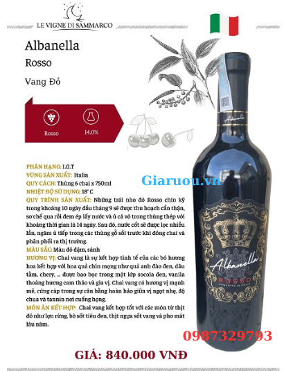 VANG Ý ALBANELLA VINO ROSSO GIÁ RẺ NHẤT